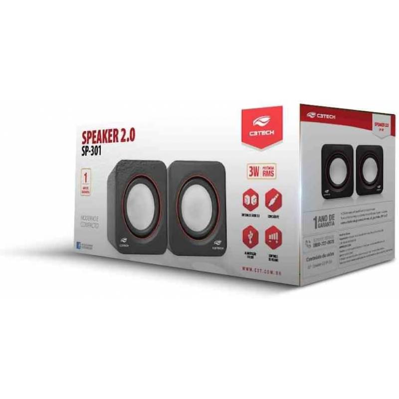 CAIXA DE SOM C3TECH 2.0 3W RMS P2 SP-301BK